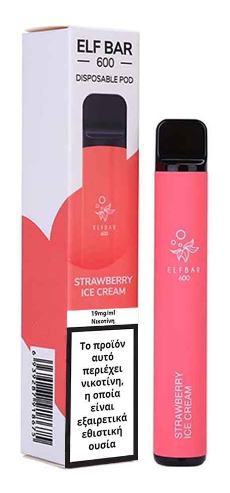 Elf Bar 600 20mg 2ml Strawberry Ice Cream | Disposable προγεμισμένο με υγρό αναπλήρωσης και απόδοση έως 600 εισπνοές