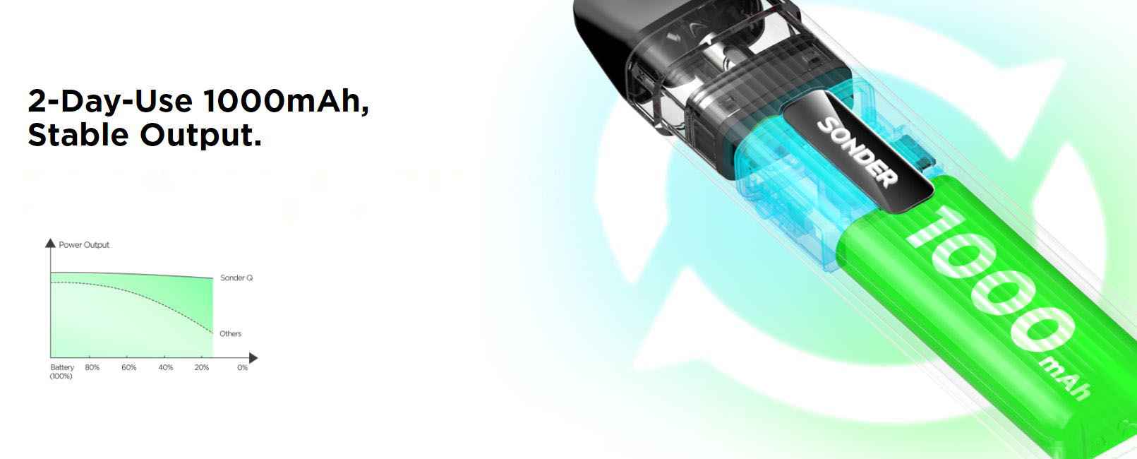 Το Sonder Q παρέχει εκπληκτική αντοχή χρήσης 2 ημερών και επιτρέπει σταθερή γεύση και σταθερή απόδοση έως και 20 W.