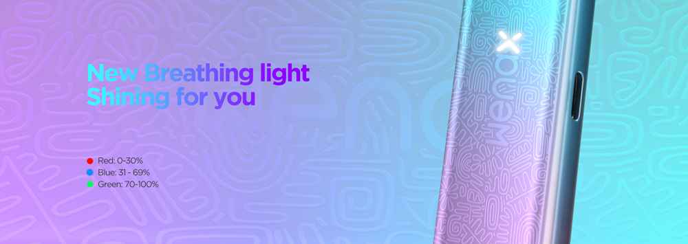 Το “X” φωτίζει σε διαφορετικά χρώματα καθώς ατμίζετε, κάτι που δείχνει την κατάσταση της μπαταρίας του.