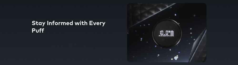 Μείνετε ενημερωμένοι με την οθόνη OLED του EZ TUBE, διακριτικά κρυμμένη στο κάτω μέρος της συσκευής. Παρακολουθήστε βασικά δεδομένα όπως η ισχύς, ο αριθμός εισπνοών και η διάρκεια εισπνοής. Μια πλήρως ενημερωμένη εμπειρία ατμίσματος.