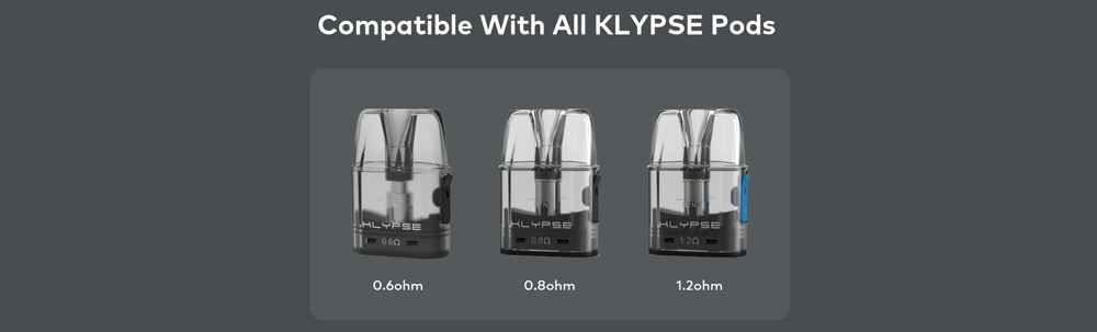 Μαζί με το νέο 0,6ohm Pod, το KLYPSE MECHA είναι πλήρως συμβατό με όλες τις δεξαμενές KLYPSE 0,8ohm και 1,2ohm.
