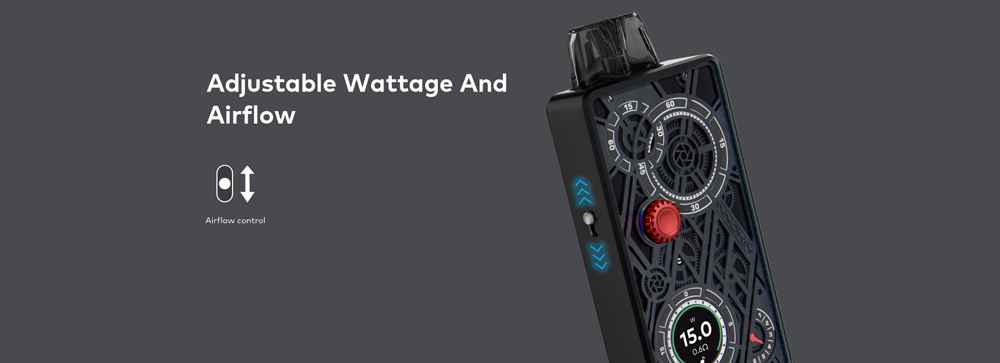 Το KLYPSE MECHA έχει ρυθμιζόμενη ισχύ και ροή αέρα! Ρυθμίστε την επιθυμητή ένταση σε watts και χρησιμοποιήστε το ακριβές ρυθμιστικό ροής αέρα για να βρείτε την χρυσή τομή.