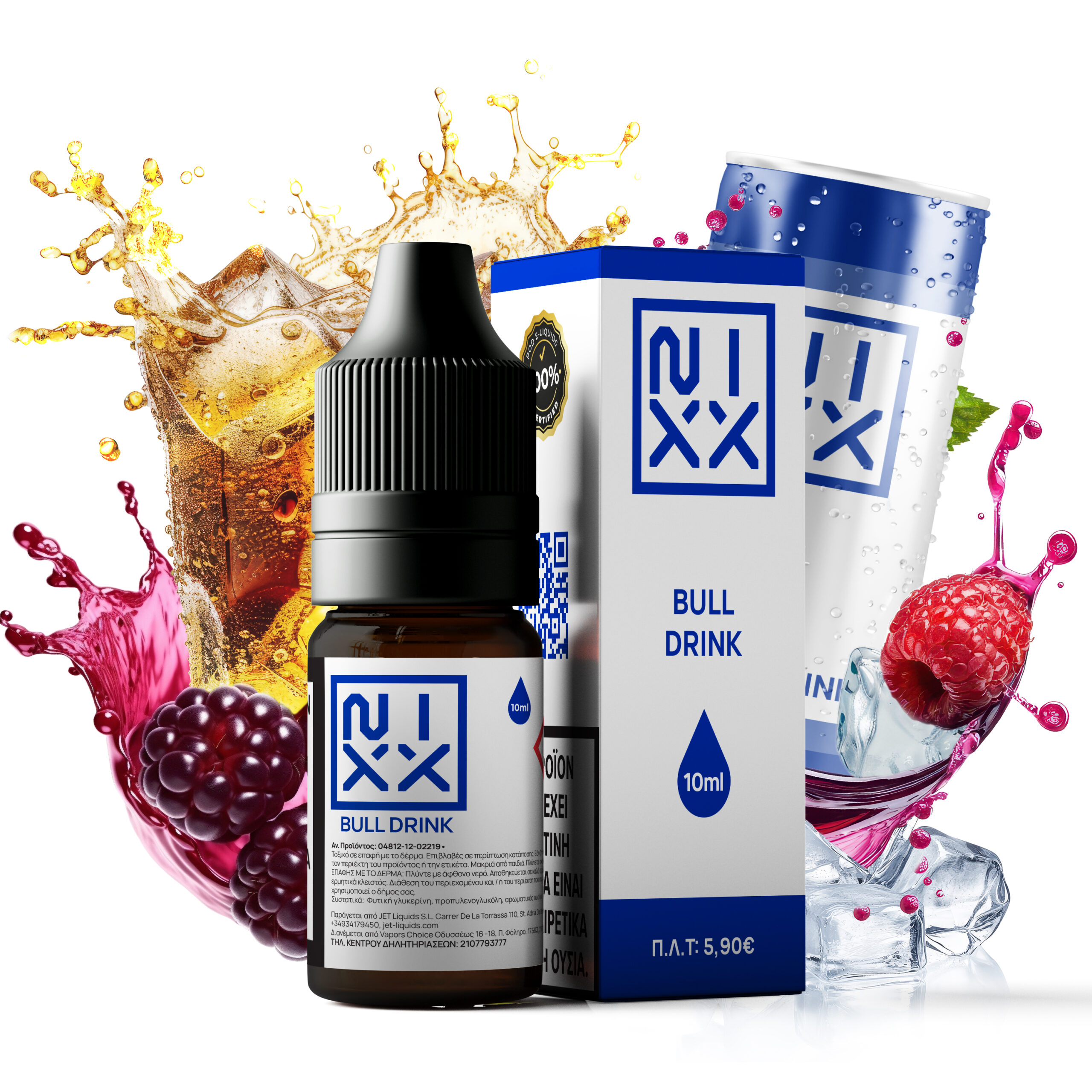 Διατίθεται σε μπουκαλάκι περιεκτικότητας 10ml. Υβριδική νικοτίνη που συνδυάζει την κλασική (freebase) νικοτίνη (50%) με νικοτίνη αλάτων (50%).