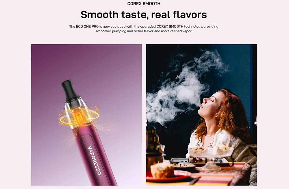 Η τεχνολογία COREX SMOOTH προσφέρει έως 20% καλύτερη και πιο καθαρή γεύση στο άτμισμα.