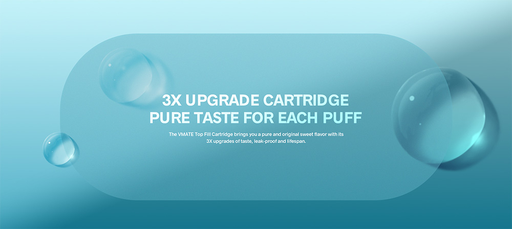 Η αναβαθμισμένη 3X VMATE Top Fill cartridge μειώνει τις διαρροές, βελτιώνει τη γεύση και αυξάνει την ανθεκτικότητα για πιο αξιόπιστη χρήση.