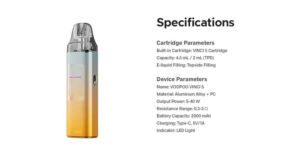 Το VOOPOO VINCI S είναι ένα minimalist POD 40W, σχεδιασμένο για καθημερινή, αδιάκοπη χρήση. Με την μπαταρία Ultra Endurance 2000mAh, προσφέρει πολλές ημέρες αυτονομίας χωρίς άγχος φόρτισης — πάντα ενεργό, πάντα έτοιμο, χωρίς διακοπές.