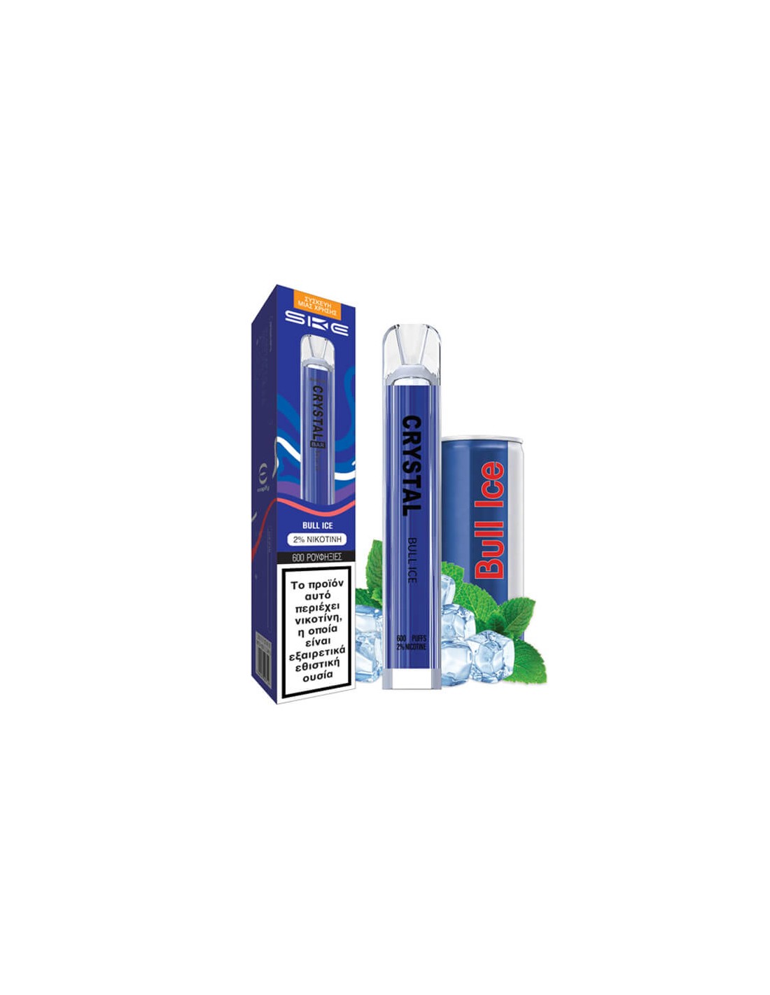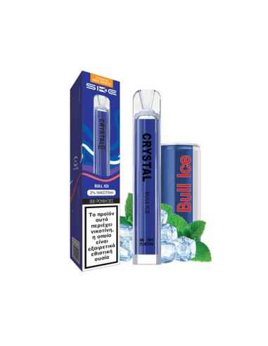 Pre-filled Crystal Bar Bull Ice 2ml pod with 20mg (2%) salt nic, up to 600 puffs and built-in 500mAh battery. Ideal for mtl and cool menthol experience on the go.