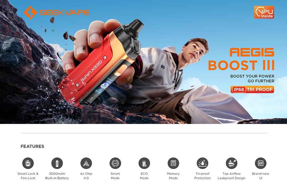 Featuring a 3000mAh battery and high power up to 60Watt, the Aegis Boost III ensures extended vaping sessions without compromising on power.