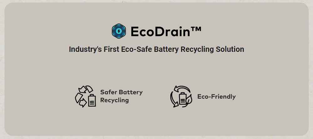 Improve safety with patented EcoDrain™ battery discharge technology! EcoDrain allows you to discharge batteries before recycling, minimizing the risk of fire.