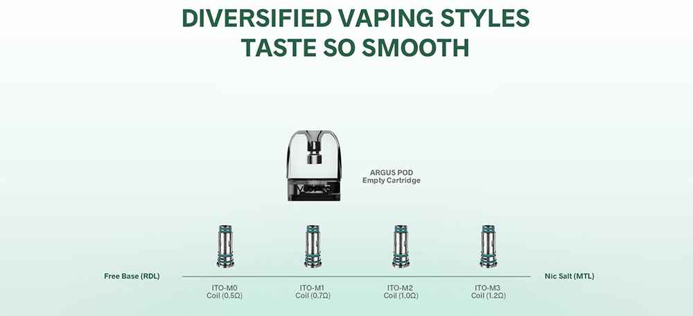 Adopting VOOOPOO ITO technology, the ARGUS Pod comes with extremely smooth flavor and long life. One coil lasts for about 14ml of e-liquid.