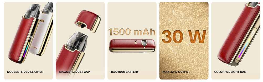 The new VMATE E2 brings a new premium touch, with leather on both sides of the device, as well as a magnetic lid to close and protect the tank. Featuring 3X upgraded tanks, it offers an optimized and cleaner vaping experience. With a powerful 1500 mAh battery, you can enjoy longer use without interruption.